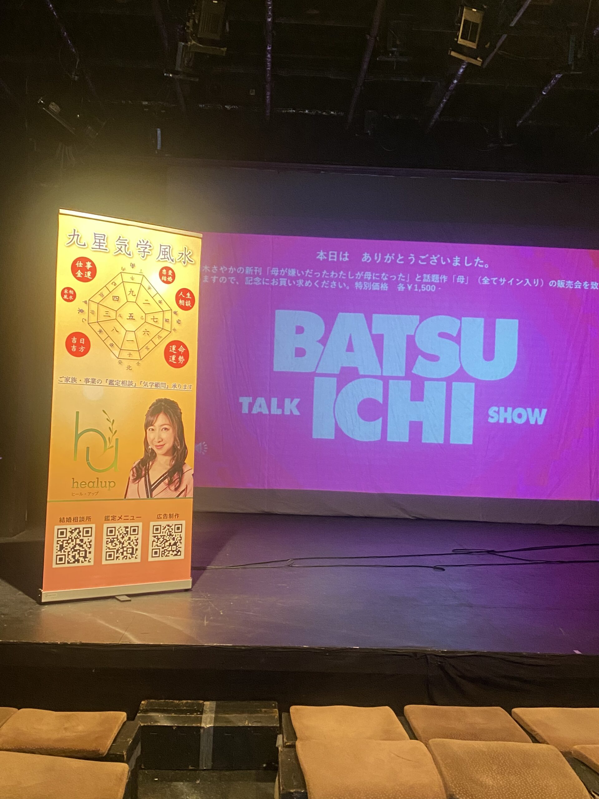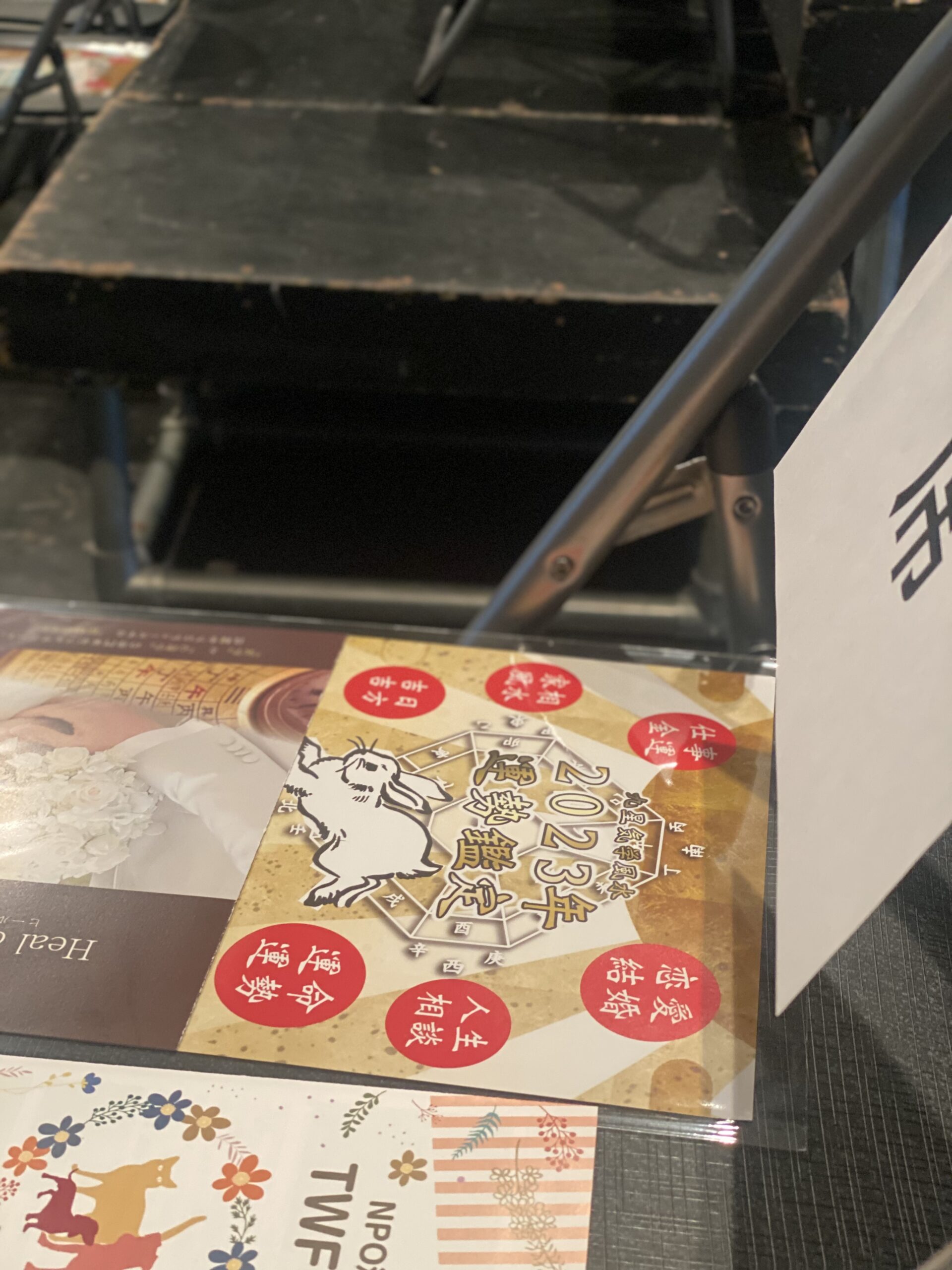 お席にはヒール・アップの気学鑑定と結婚相談所ヒールドマリアージュのパンフレットを設置させていただきました。