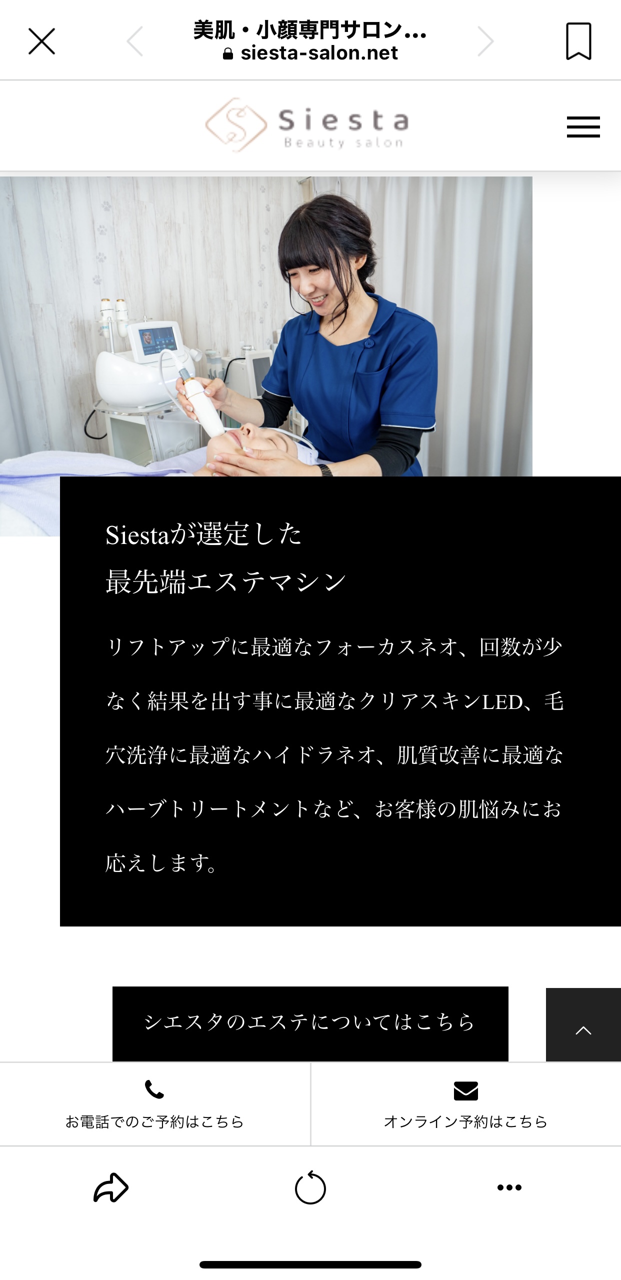 美肌•小顔専門サロン『Beauty salon siesta』様の公式HP  を制作させていただきました。