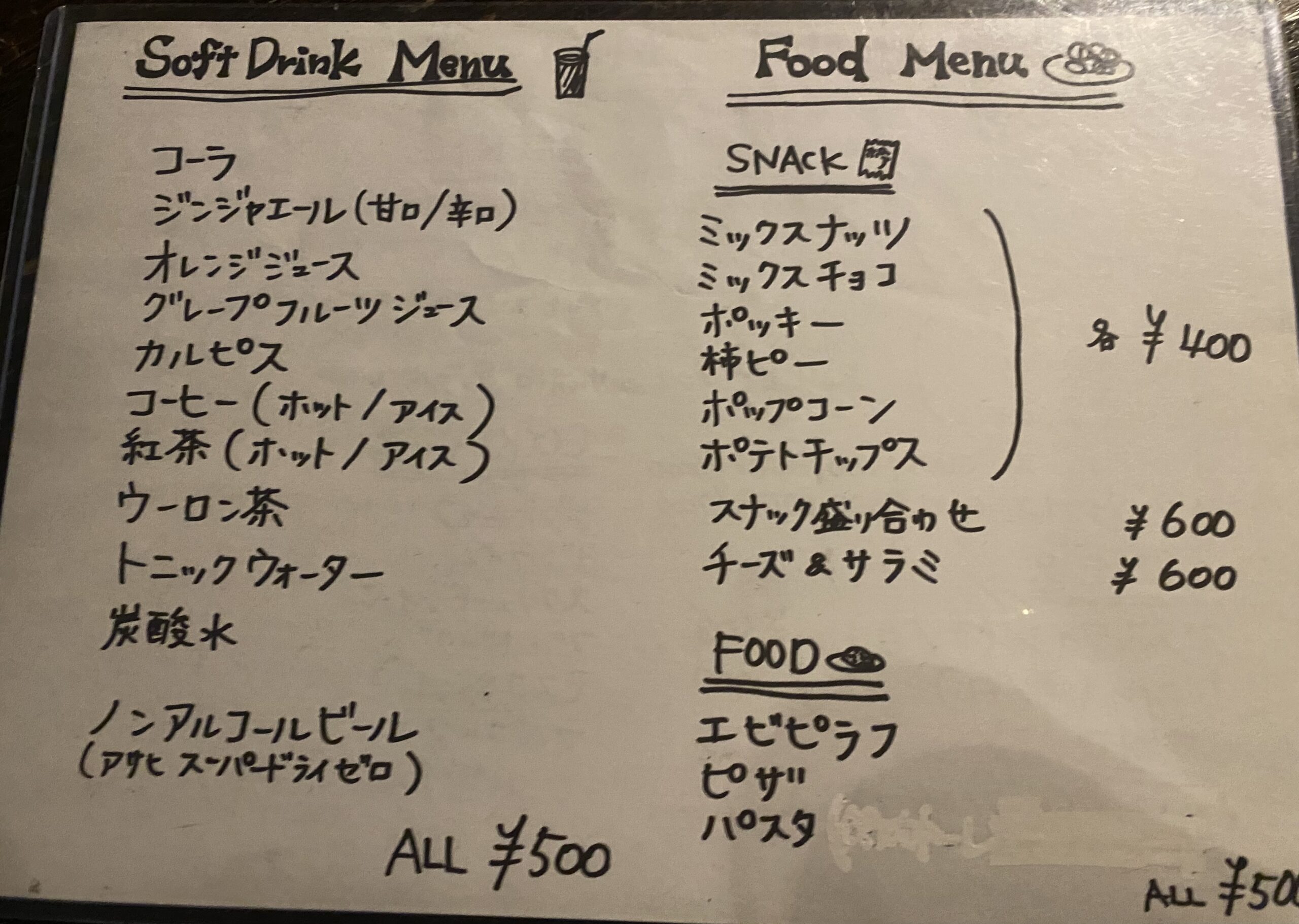 ・お食事、おつまみ類                ※持込料は無料です