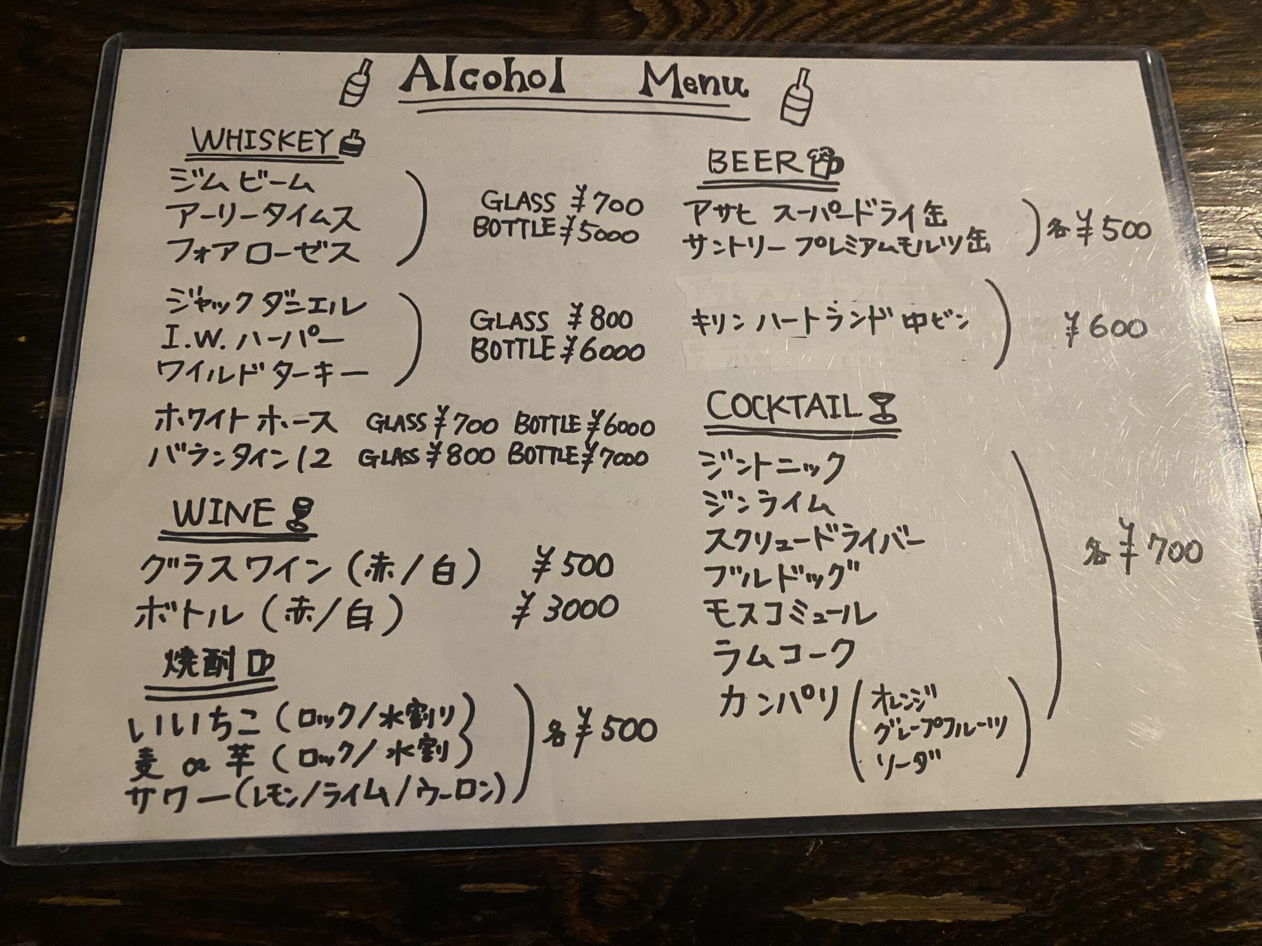 ・ワイン、日本酒、リカー類   ※持込料は1ボトルにつき2,000円(税込)