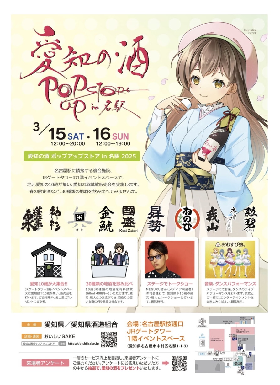 3/15(土) は名古屋駅JRゲートタワーイベント広場で『愛知の酒 ポップアップストア2025』にライヴ出演をさせていただきました!