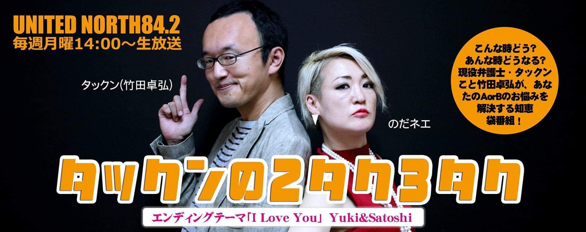 『タックンの2タク3タク』は、弁護士のタックンこと竹田卓弘さんがパーソナリティの “法律情報を分かりやすく解説する”ラジオ番組。